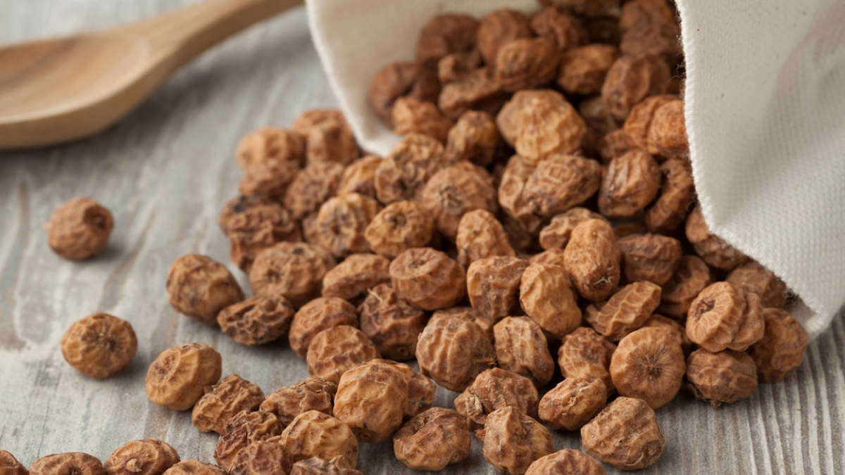Originaire du continent africain et de méditerranée, le souchet comestible est une plante herbacée rhizomateuse vivace de la famille des Cypéracées. Aussi appelé « amande de terre », « noix tigrée » ou « pois sucré », le souchet n’est en réalité pas une noix, mais un tubercule racine aux nombreuses qualités nutritionnelles. Ne faisant pas partie de la famille des oléagineux, le souchet est un produit non allergène et naturellement sans gluten ni lactose. Ses tubercules ont un goût légèrement doux, avec des notes de noisettes.